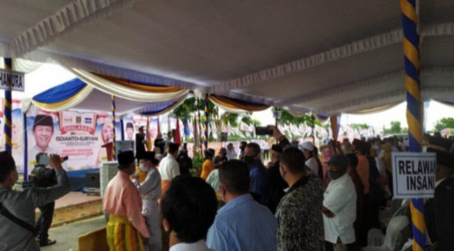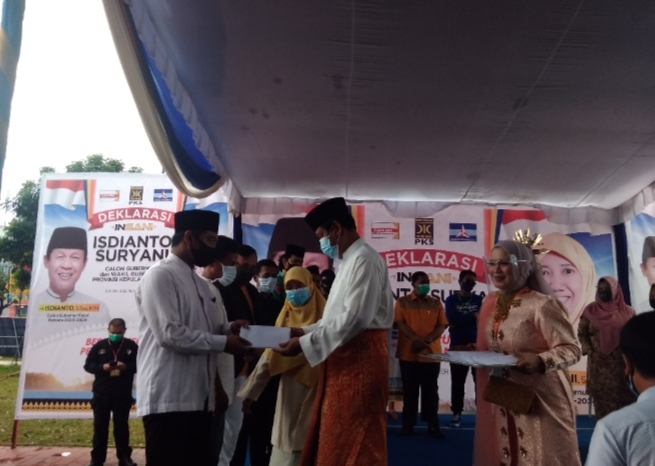 BATAM, INDONESIAPARLEMEN.COM – Pasangan Calon Gubernur dan Wakil Gubernur Kepri Isdianto – Suryani (INSANI) menggelar deklarasi bersama para relawan dan tokoh Masyarakat di halaman Kantor Pemenangan INSANI, Ruko Orchid Bussiness Center, Batam Center, Kota Batam, Kamis (3/9/20).
