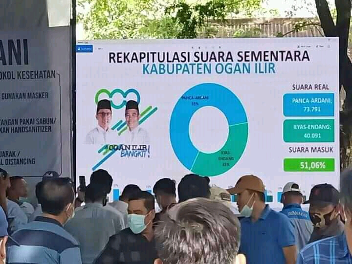 Karena dilihat dari beberapa jumlah rekapan yang telah ditandatangani secara resmi masing-masing Tempat Pemungutan Suara (TPS) dibeberapa Kecamatan Kabupaten Ogan Ilir, menunjukkan bahwa Pasangan Panca-Ardani rata-rata unggul di atas Ilyas-Endang.