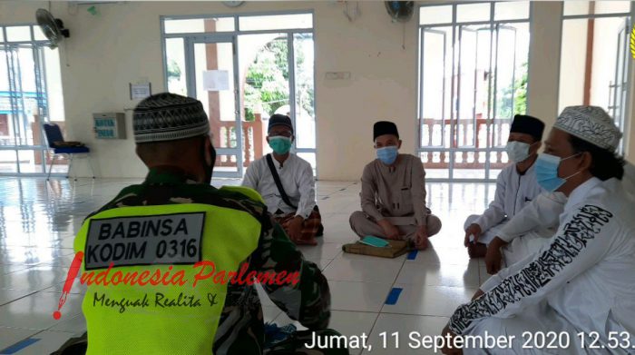 Sosialisasi Protokol Kesehatan, Serma Indra Surya Juga Lakukan Sholat Bareng di Masjid Nurul Huda