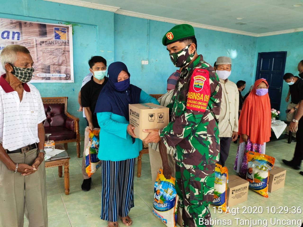 Sertu Sumardi Bantu Pendistribusian Sembako dari BP Batam Kepada Warga Tanjung Uncang
