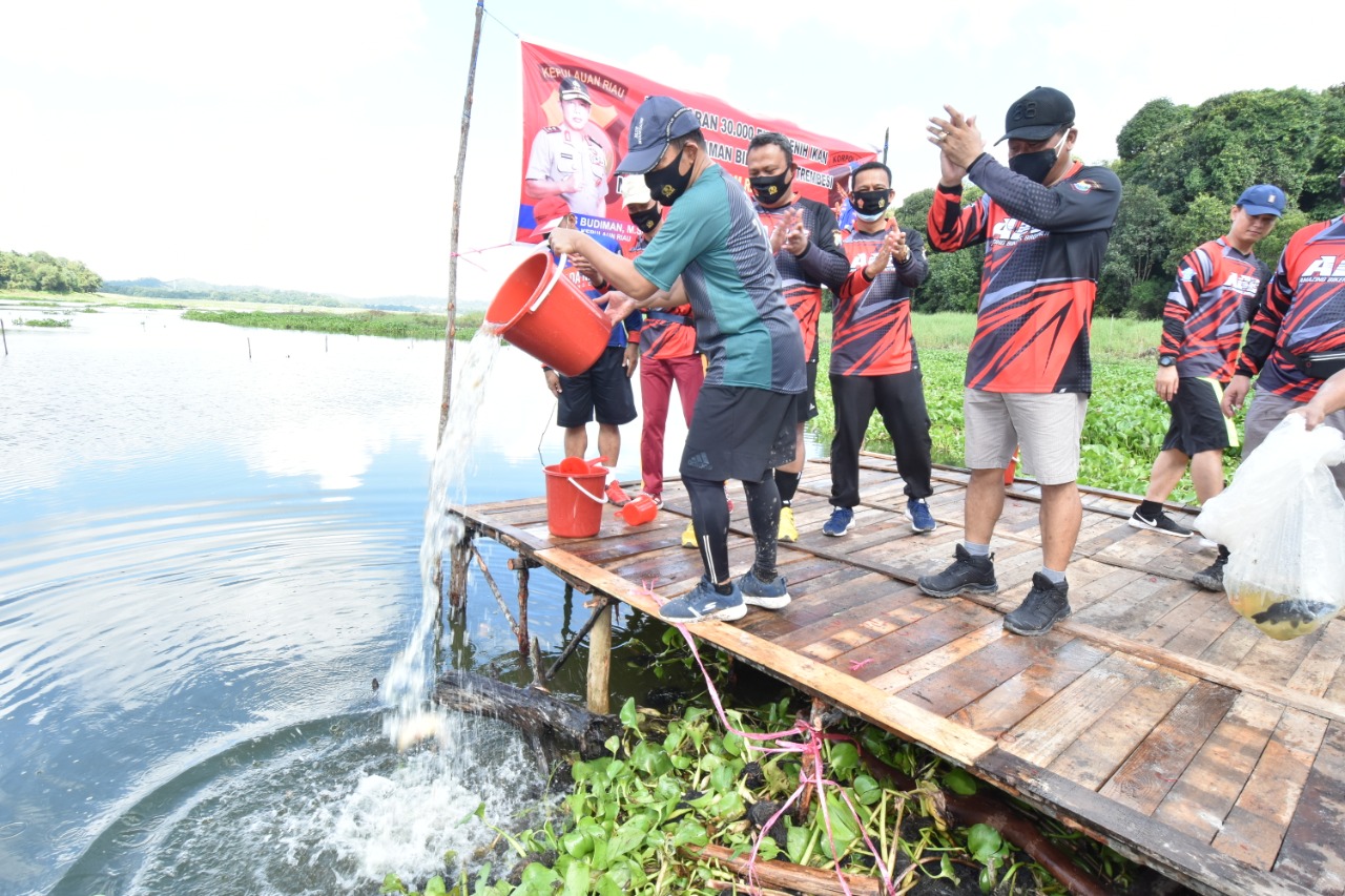 Kapolda Kepri Tebar Benih Ikan dan Tanam Bibit Pohon di Kawasan Duriangkang