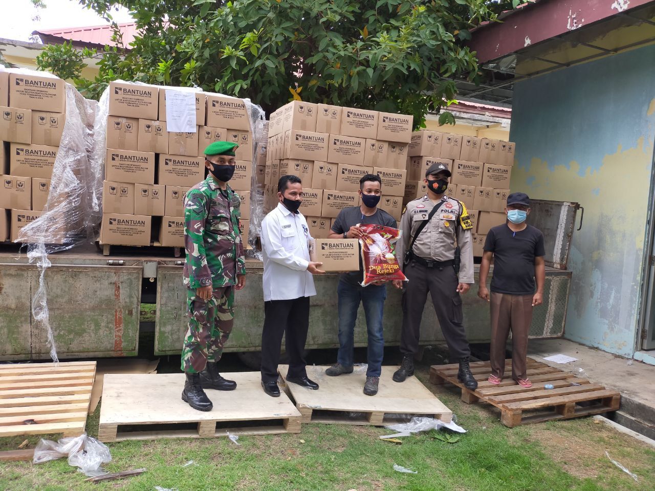Sertu Ruslan Dampingi Pendistribusian Sembako Bantuan Covid-19 dari BP Batam