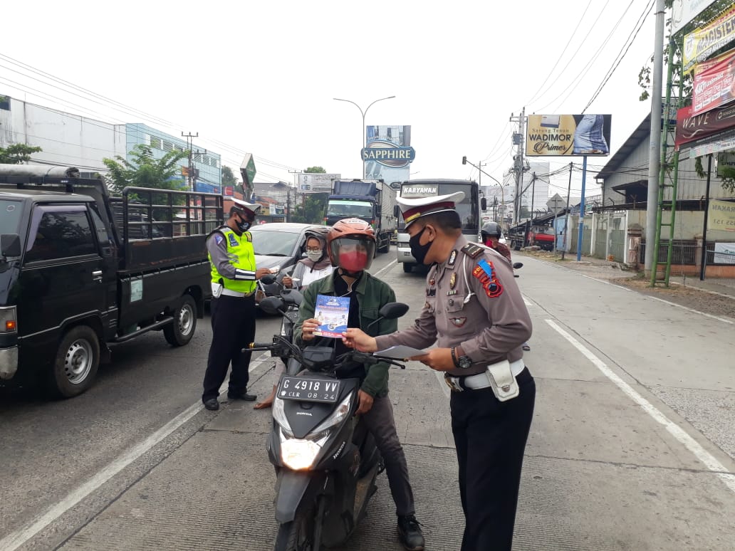 Jelang Berakhirnya Ops Patuh Candi 2020, Polres Pekalongam Kota Bagikan Lieflet Tertib Lalu Lintas